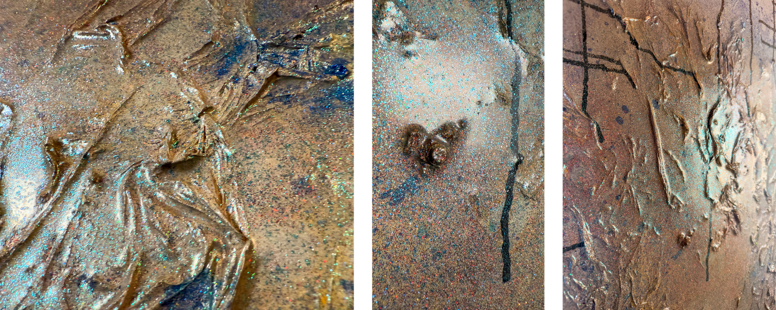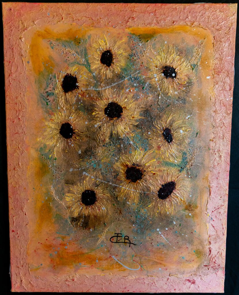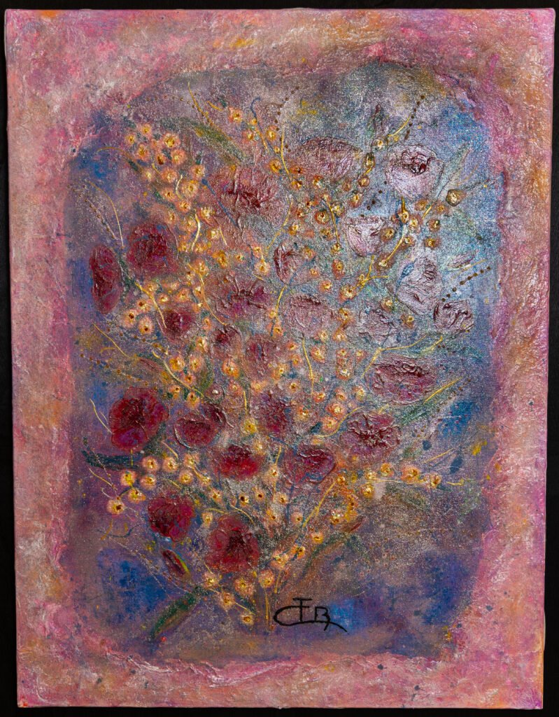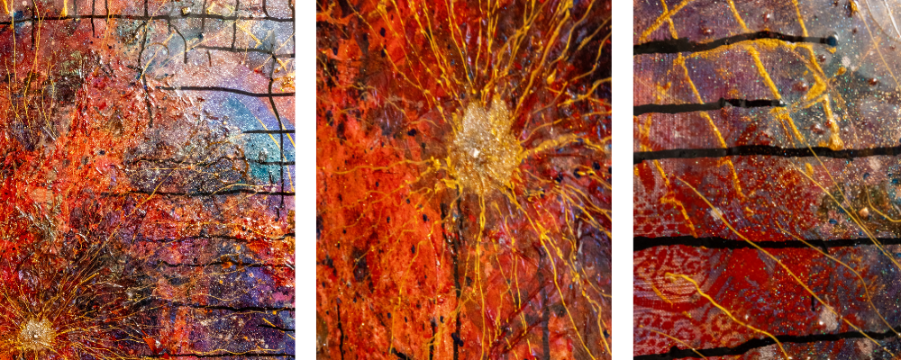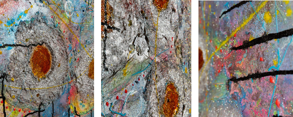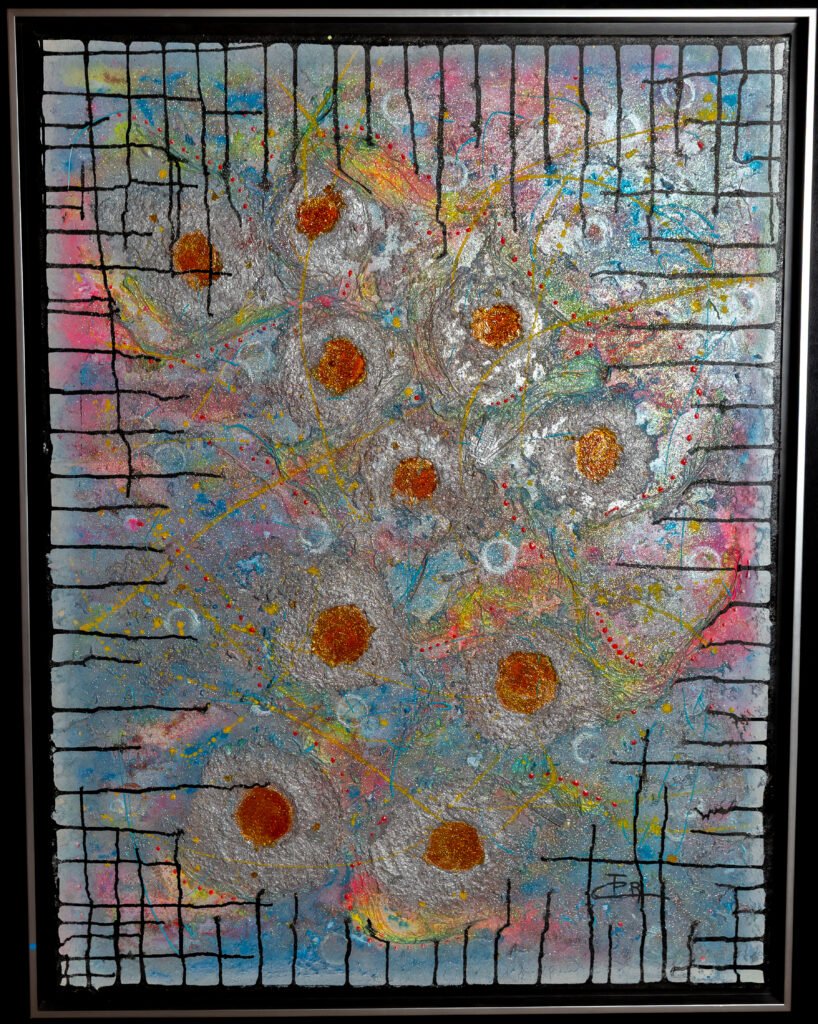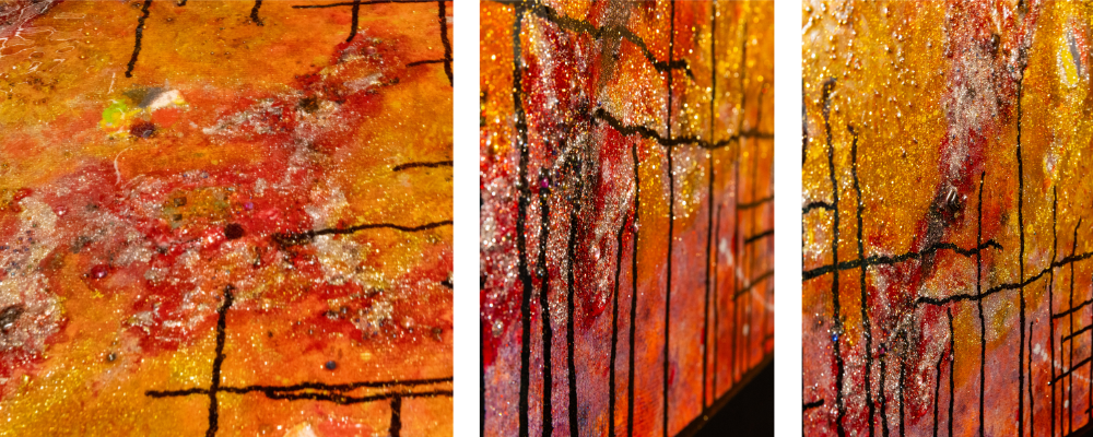 « Travailler la lumière dans mes œuvres, grâce à la matière est primordial et chaque tableau est une réflexion de couleur, de matière et de lumière. Ils sont la connexion entre le tangible et l’intangible »