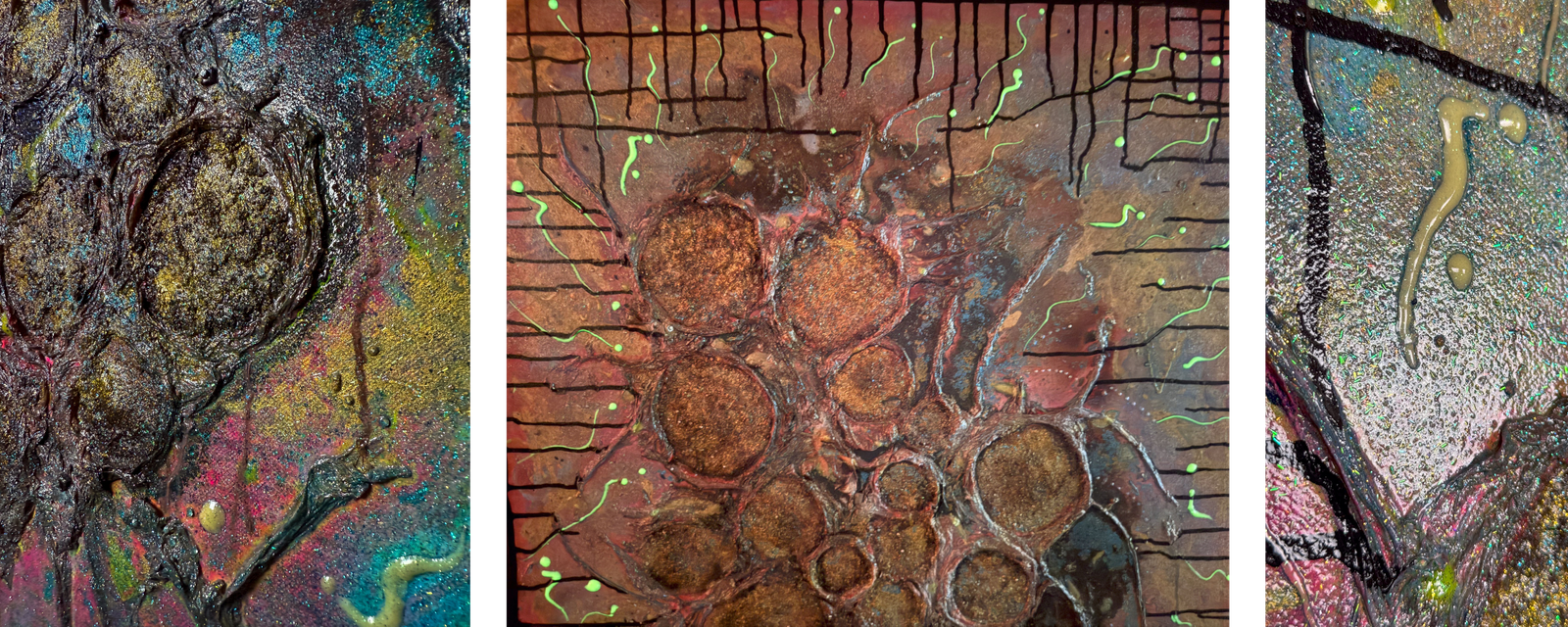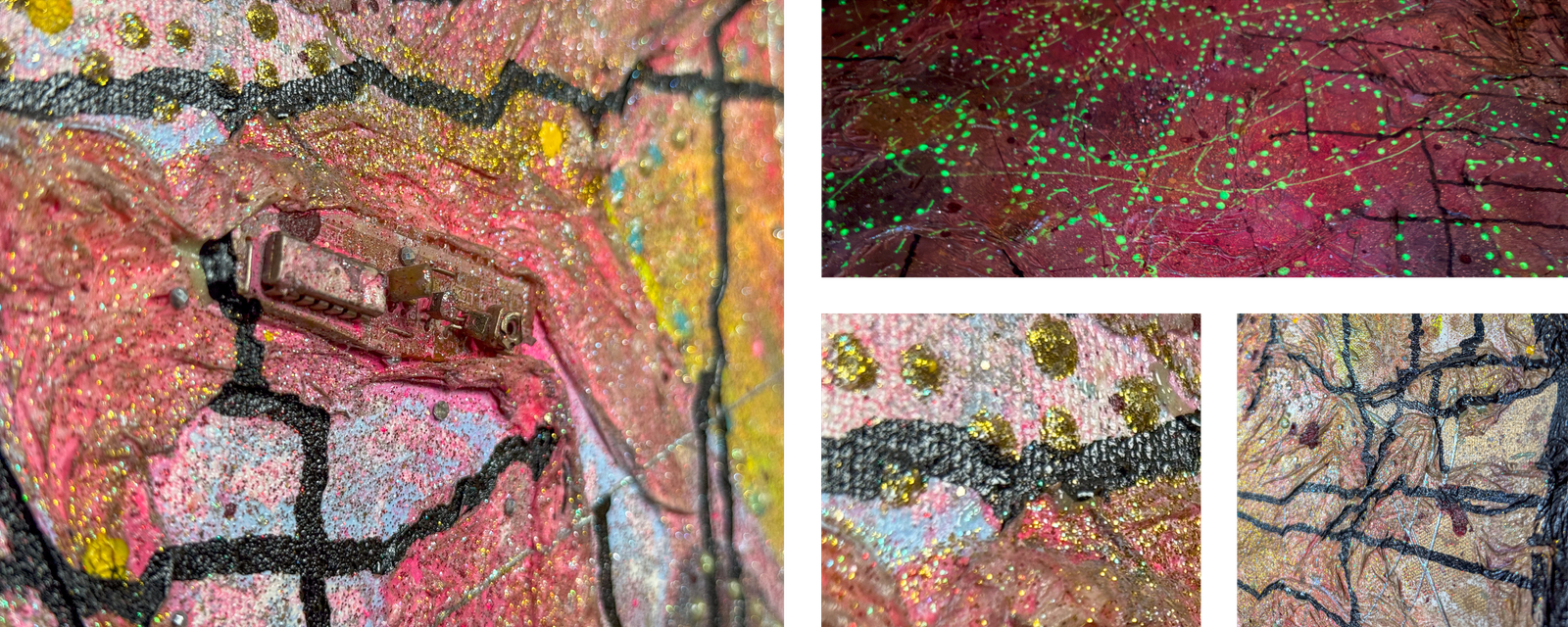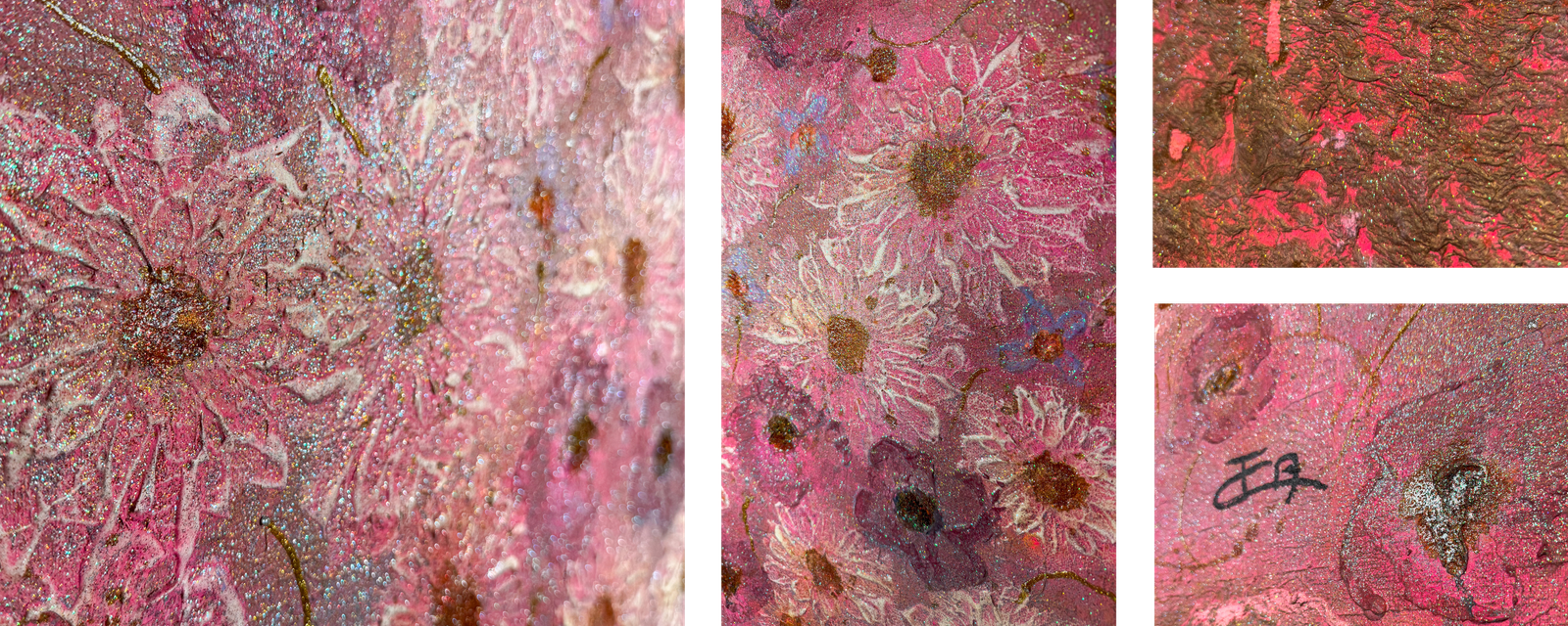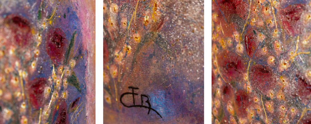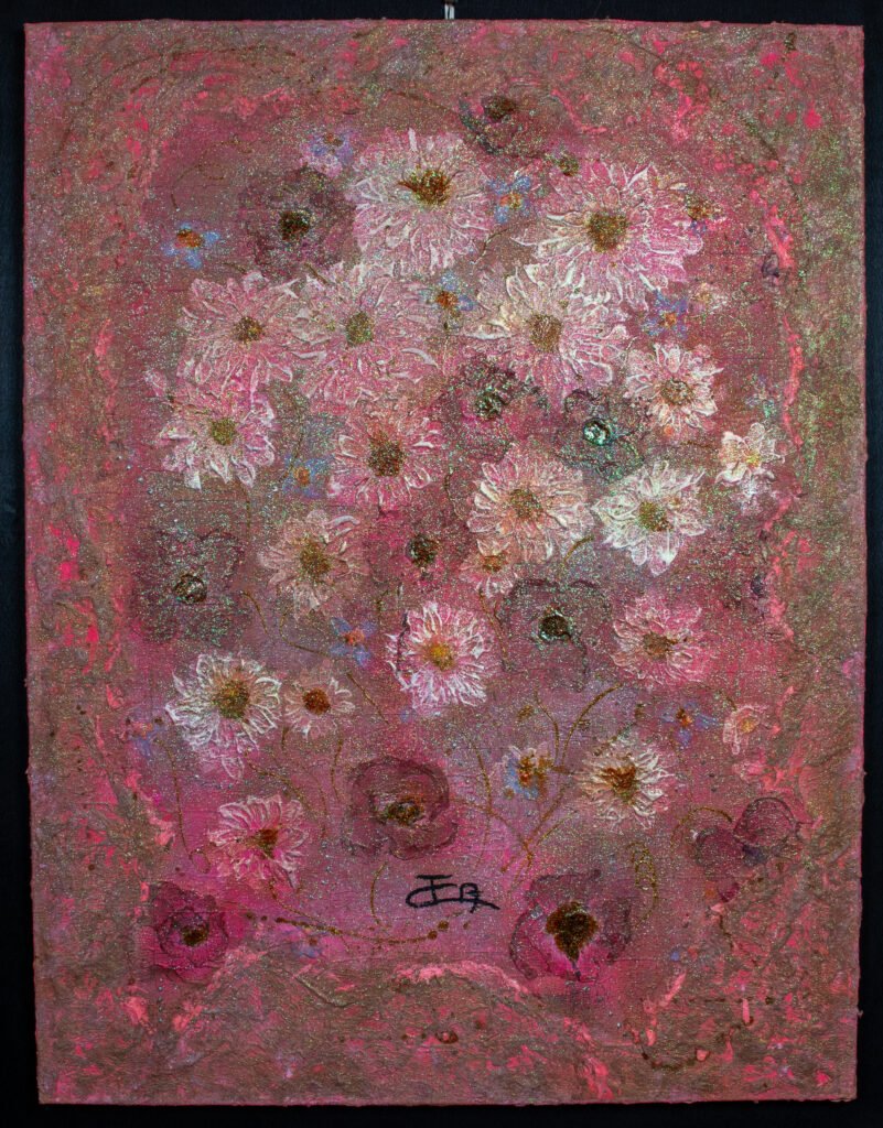 « Travailler la lumière dans mes œuvres, grâce à la matière est primordial et chaque tableau est une réflexion de couleur, de matière et de lumière. Ils sont la connexion entre le tangible et l’intangible »